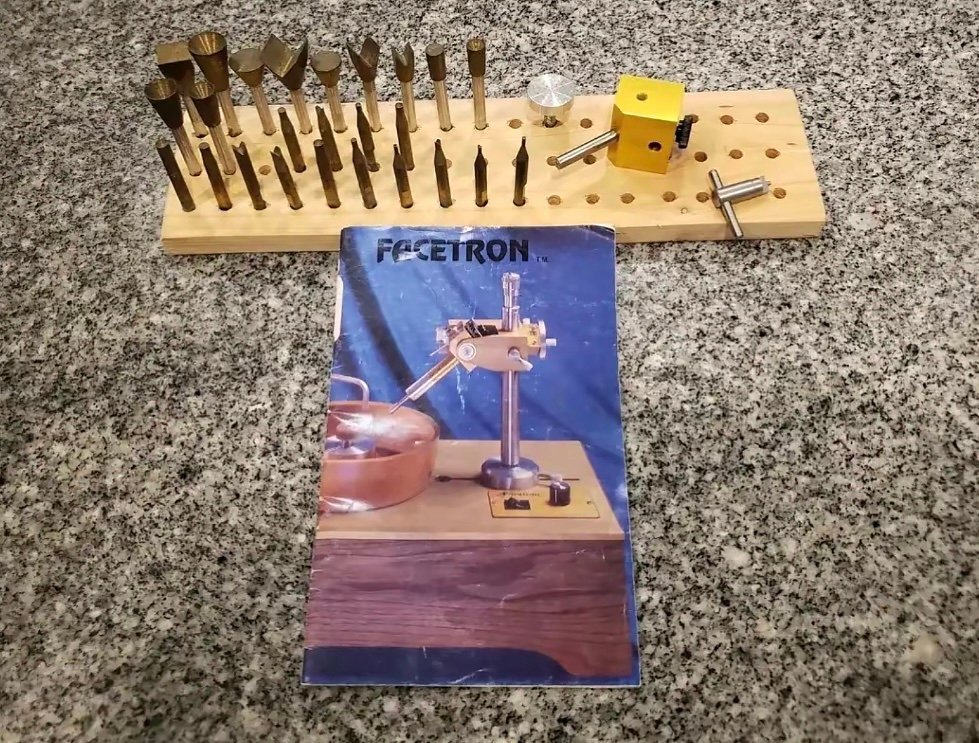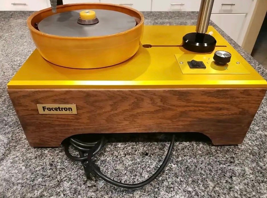 A Lapidary Luxury ” is how most faceter’s describe the Facetron because of it’s ease of operation, superior quality and precision that makes it a joy to create beautiful gemstones.The Facetron comes as a complete turn-key unit except for laps. If you already have your laps then unpack it and start faceting.Dollar for dollar the Facetron is the best faceting machine you can buy.SOLD IN AS IS CONDITION.Complete Facetron includes all you need to begin makingfine gemstones, no laps and rough :A set of 15 dops 45 degree Dop Dial IndicatorWater System The complete Facetron Machine index gear ( 96 – All Purpose, Recommended as first index gear ) Acculign Transfer Stand for unequaled precision and ease of use. Locating bar holds keyed dops for perfect stone transfers. 110V, 60 Hz.